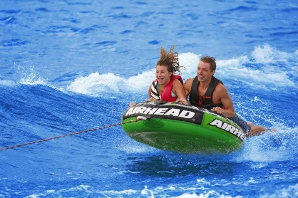 The durable 30 gauge virgin PVC bladder is fully encased by a rugged 840 denier double-stitched nylon cover with a reinforced internal tow harness. This makes it far more dependable than ordinary inflatable tubes for boats. Slice is safe and convenient, too. It’s equipped with a Speed Safety Valve for fast inflating and deflating, ensuring it’s always easy to have a day on the water. Order this inflatable boat tube from Airhead today!