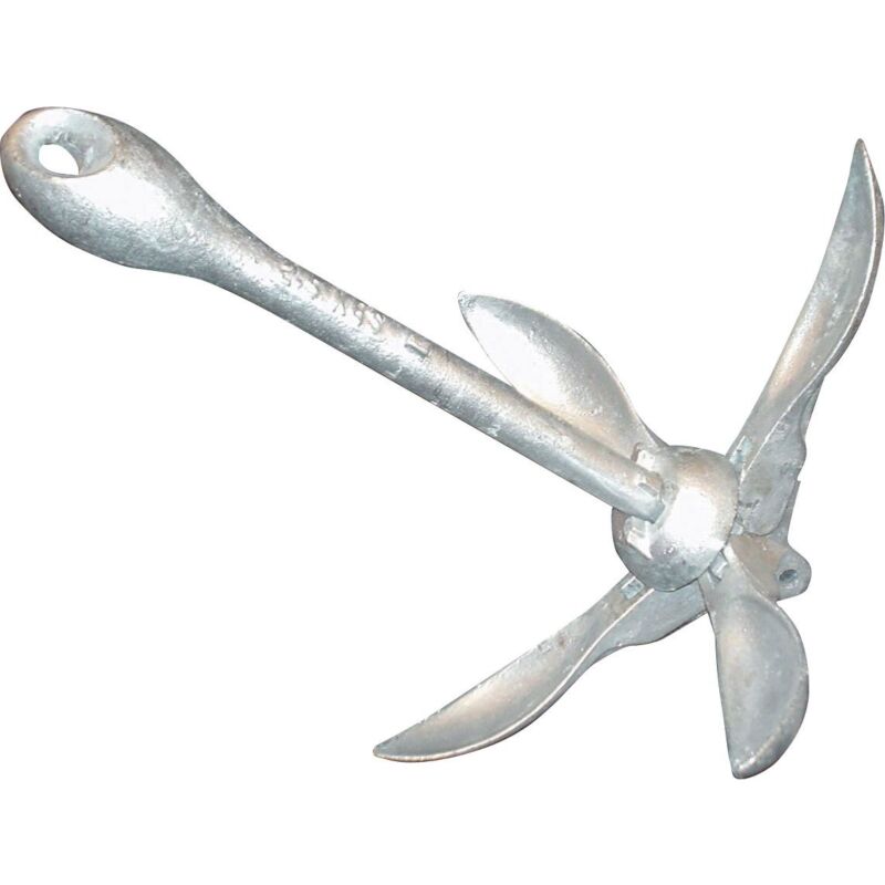 This folding grapnel boat anchor design with spoon flukes offers great performance and can also be stowed easily on your vessel.