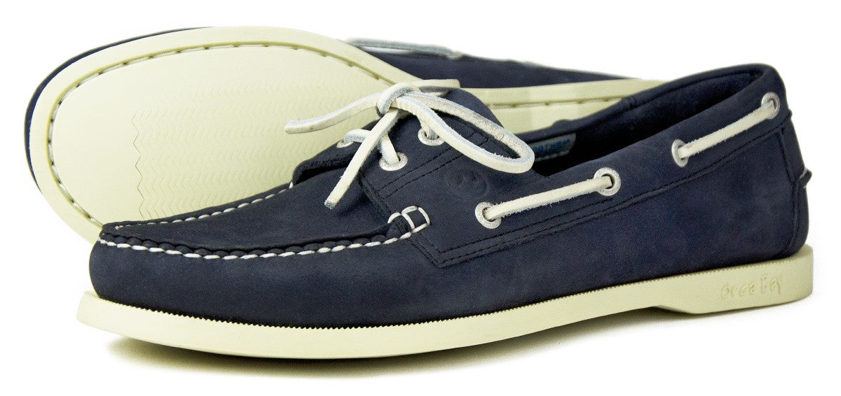 Classic men's deck shoe from Orca Bay - hand stitched washable nubuck leather moccasin in grey/indigo